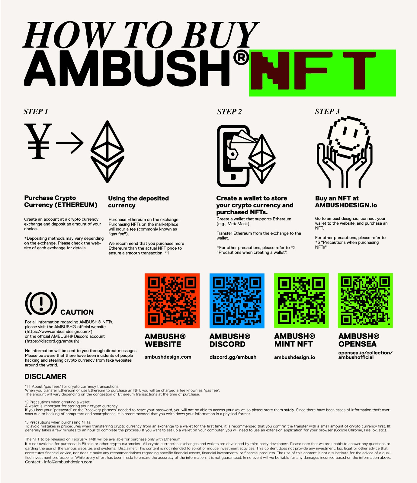 ※ To purchase, an AMBUSH® NFT, an Ethereum wallet such as METAMASK is required.
