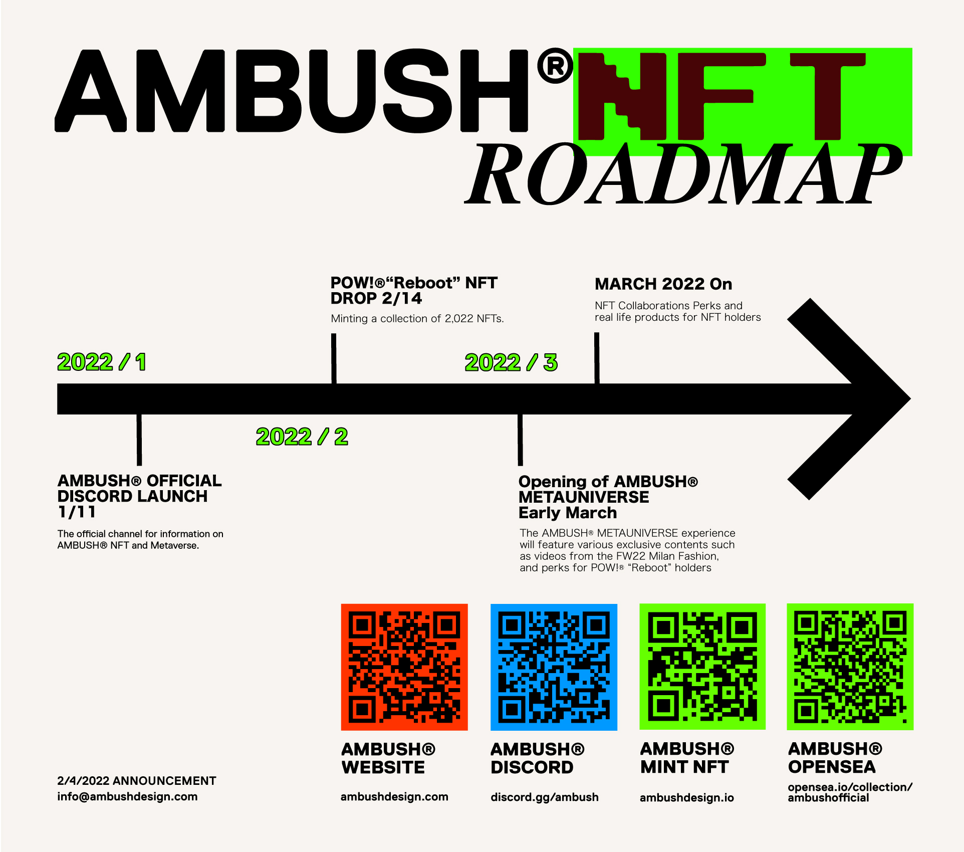To mark the beginning of AMBUSH® as a fixture of fashion in WEB 3.0, AMBUSH® has opened its official DISCORD channel and now launches its first NFT Collection.