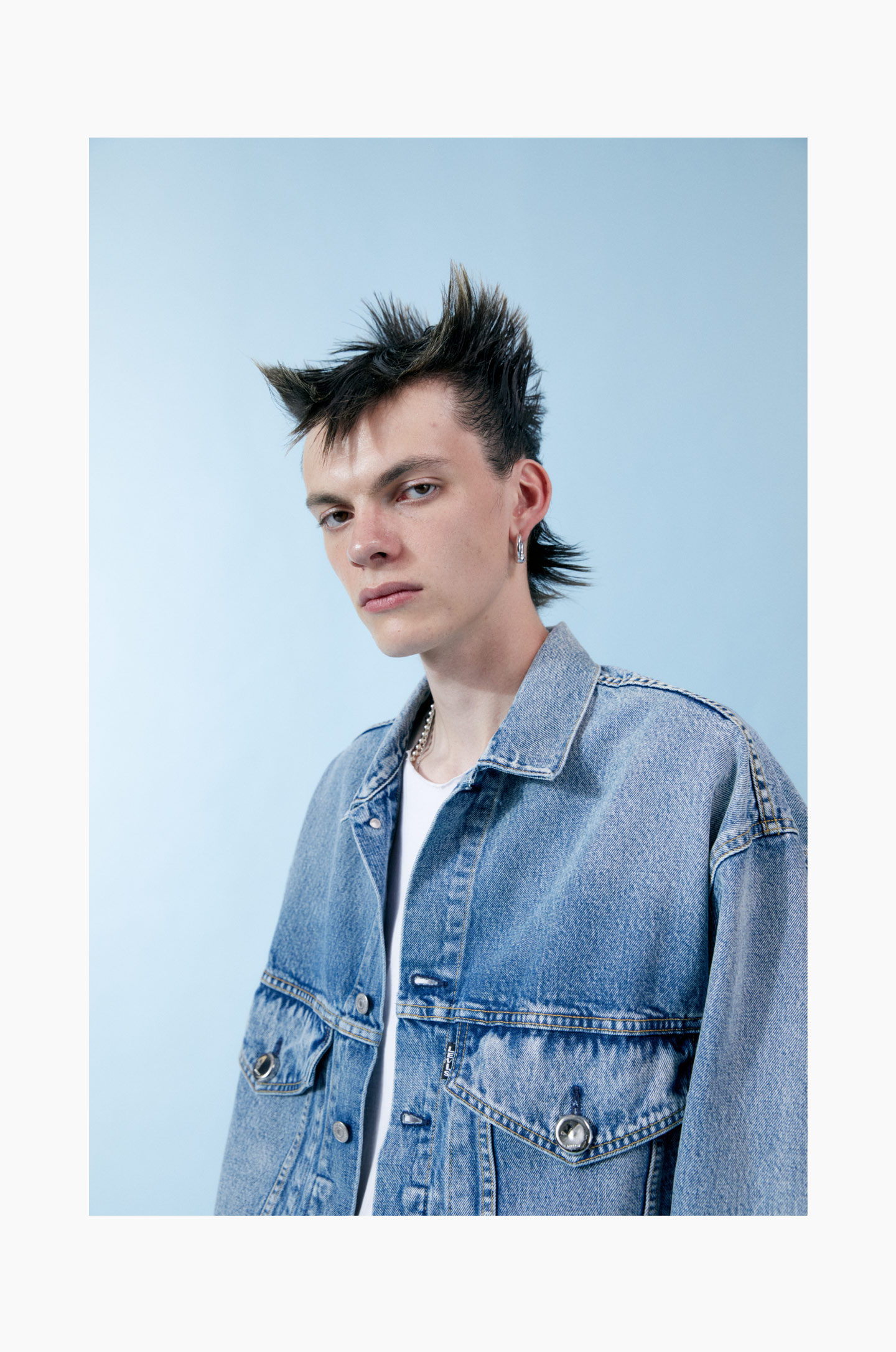 Loose Fit Trucker Jacket はウォーン加工を施したミッドインディゴウォッシュで、AMBUSH®のシルバーボトルキャップボタンと、Levi’s®の「Two Horse Pull」とAMBUSH®ロゴを組み合わせた特別仕様のブラックパッチが特徴。AMBUSH®限定の Embellished Loose Fit Trucker Jacket には、同じディテールに加えてカスタムジュエリーの装飾とメタリックシルバーのバックパッチが施されています。