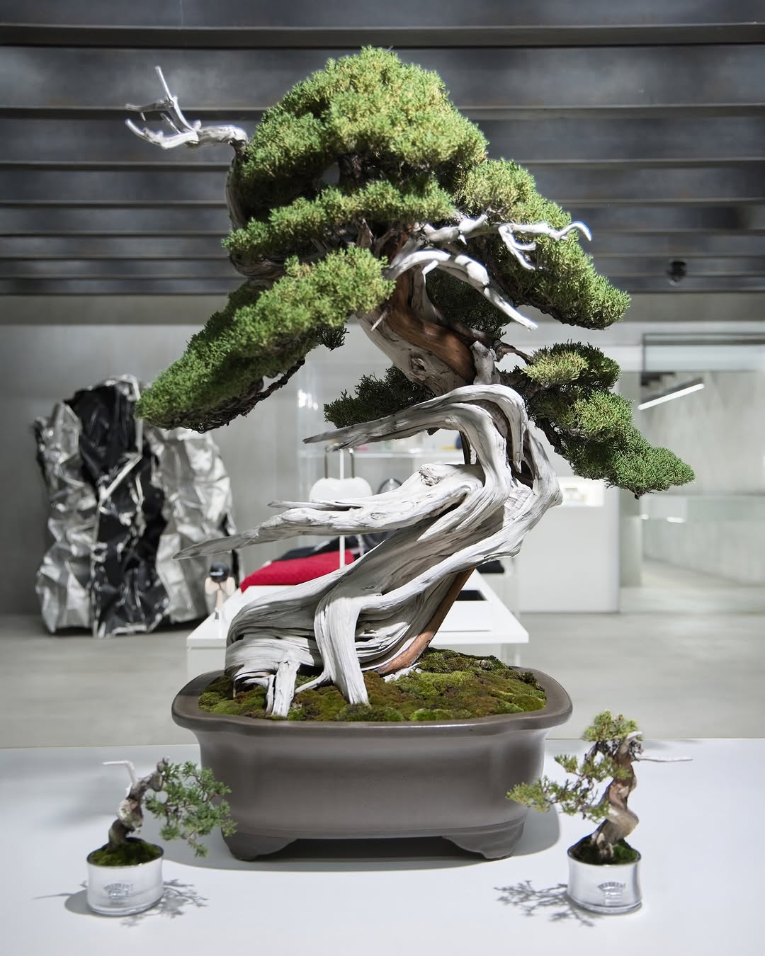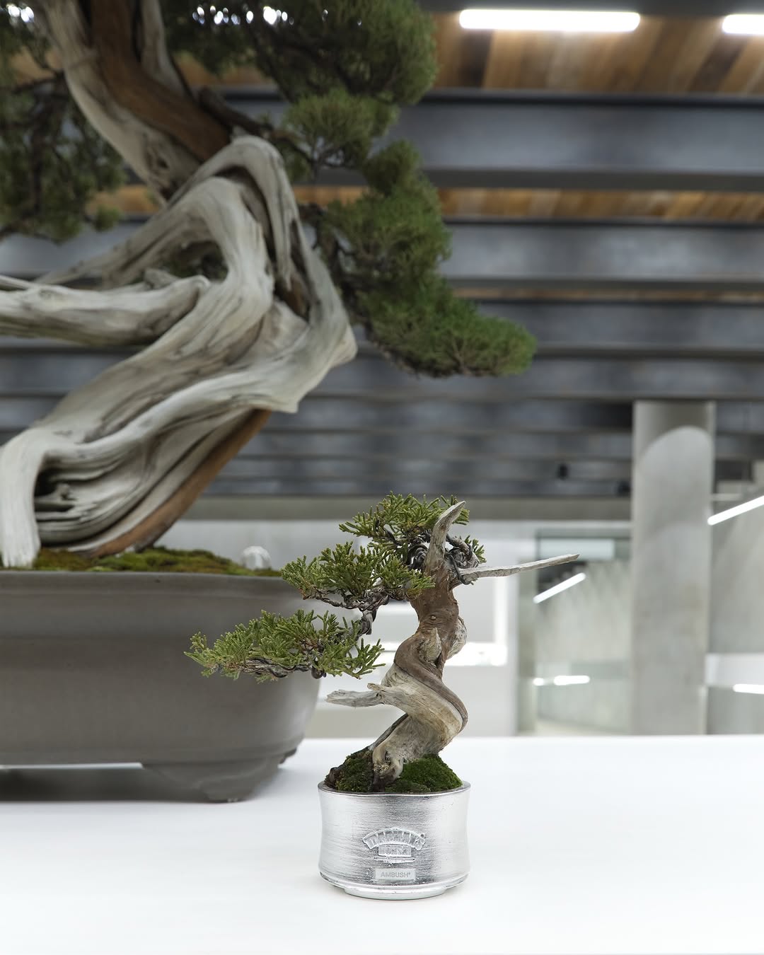 Originally founded as an experimental jewelry brand, AMBUSH® continues to place jewelry at the core of its identity. Drawing from that heritage, the planter is finished with a silver coating and engraved on the front with the AMBUSH® and TRADMAN’S BONSAI logos. Blending the timeless aesthetics of bonsai with a futuristic edge, the collaboration reflects TRADMAN’S BONSAI’s philosophy of honoring tradition while constantly evolving.