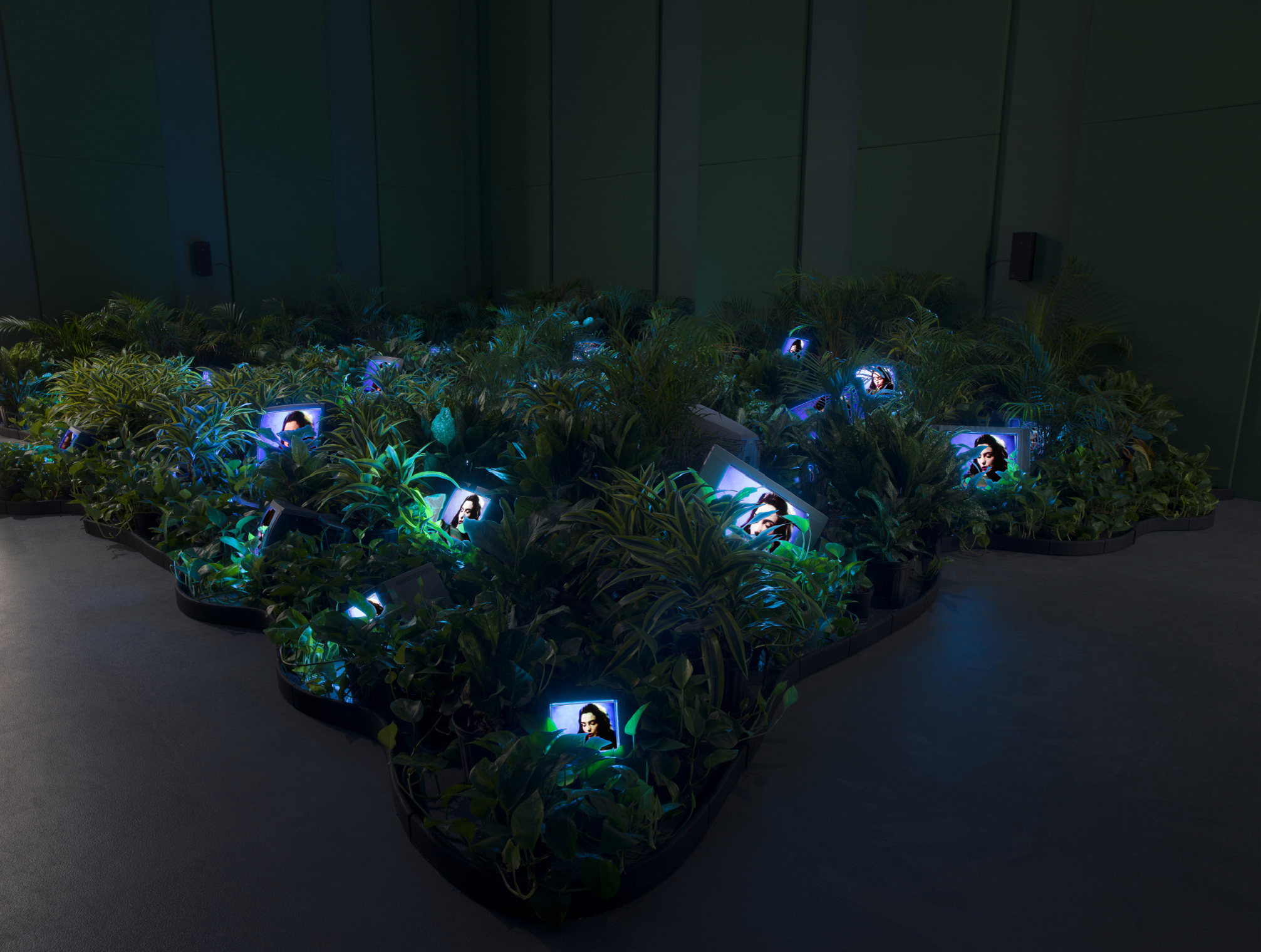 Nam June Paik, TV Garden, 1974-77, reconstructed 2002 - Live plants, cathode-ray tube televisions, and video, colour, sound. Collection of