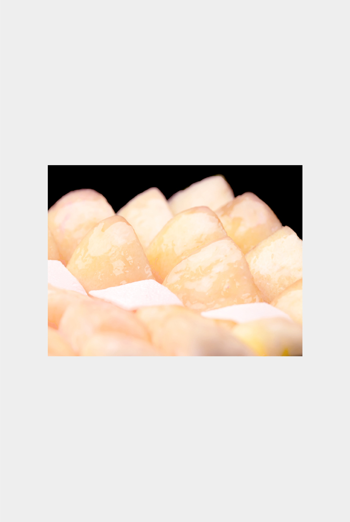 モノトーンの外観、窓から望む庭はアートの展示場所でもある。自然そのものが古い季節 を脱ぎ捨てて新しい季節をまとうように、シーズン毎に常にアップデートされるしつらいは、店そのものが変化してゆく生き物のようだ。 アジアのベストレストランでアジアのベストペストリーシェフに選ばれた庄司夏子 シェフが率いるレストランétéに、鮮やかなピンクとライムグリーンのnikeとのコラボレーションセットアップに身を包んだYOONが軽やかに降り立つ。庄司は、YOONのために準備した、厨房でできたばかりの旬の白桃のタルトを手に出迎える。魅惑的な白桃の自然な 色調のグラデーションが生かされたタルトは、白桃本来のみずみずしさが、今目覚めたかのように香り立つ。YOONと庄司シェフ、ファッションと美食の世界で、革新的な美を探究し、時代を切り拓く才能が織りなす対話。イノベーションと、この一瞬を生きる現在性について模索する。