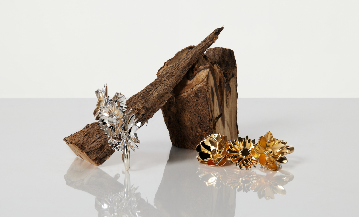 花には様々な意味があります。愛情、連帯、悲しみ、祝いの象徴でもあり、無限の解釈が可能です。でもこのリングは未来を見据えた自由なアプローチ、そしてロマンティックな感性にインスパイアされたデザインです。