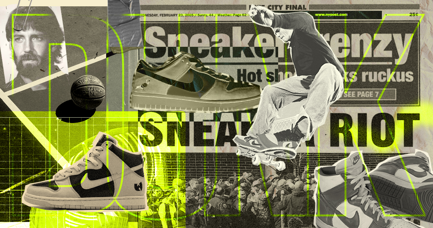 この時期にスケーター達がダンクを履き始めたのだった。そのデザインからすれば、決して驚くべき現象ではない。オーリーを主体としたトリックが中心となった事で当時のスケートシューズブランド、よりハイカットなシルエットと補強用の「オーリーパッチ」の開発を余儀なくされたが、ダンクには既にそれらの要素が備わっていたのだ。結局、スケーター達は上記と同じ理由で、ダンクと似たようなデザインを有したジョーダン1を既に履いていたのだった。伝説的なニューヨークシティのスケートクルー、シャットに所属していた、今は亡きビーズリーが1989年に黄色と黒を基調とした「アイオワ」ダンクを履いてスケートしたことは有名だ。これにより、ダンクはスケート界において、特に東海岸では文化的に重要な意味を持つようになる。