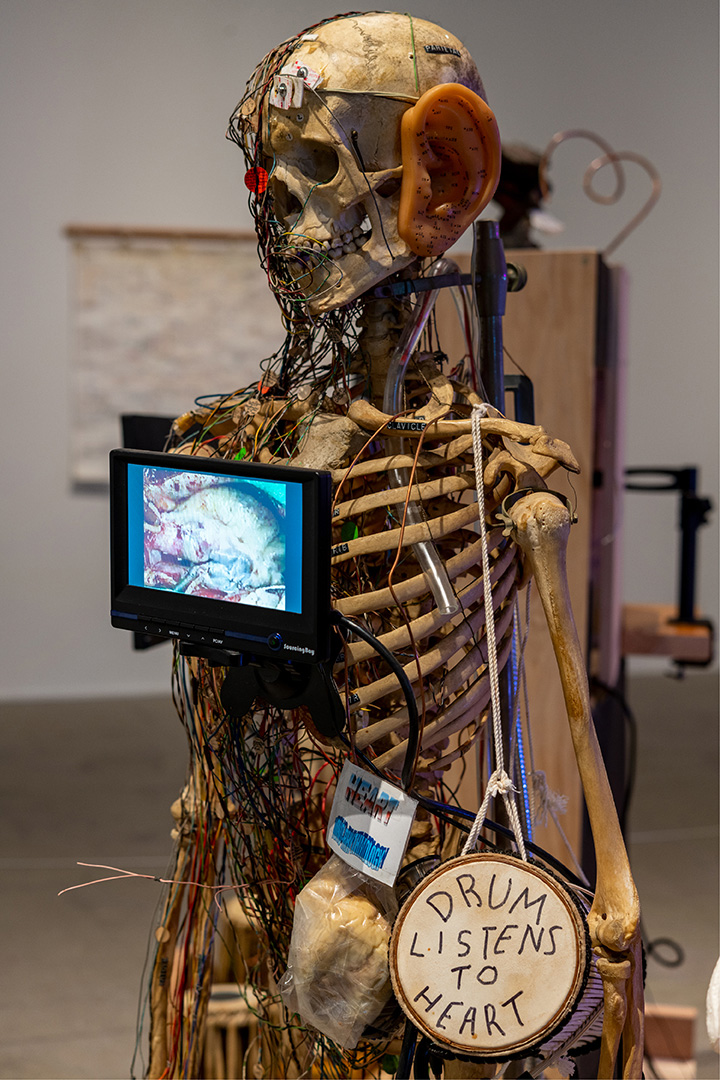 ニューヨーク クイーンズ区ジャマイカにある79歳のグレイヴスの自宅には、人体模型、心臓モニタリング装置、アフリカのフラクタルパターンの本のコレクションなどが所狭しと並ぶなかに、「drum listens to the heart」(ドラムは心臓の音を聴く)と記されたドラムヘッドが置かれている。それは彼のライフワークの意味を明らかにしてきた大事な言葉だ。