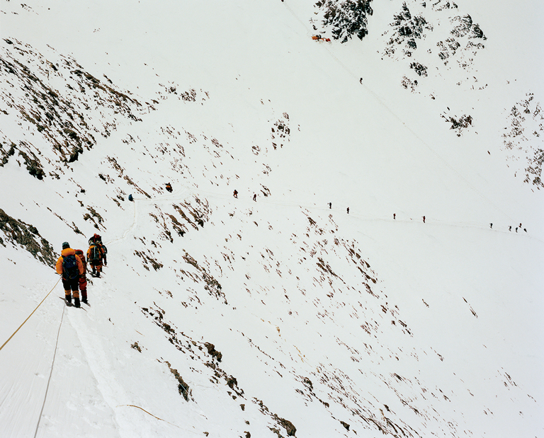 石川直樹にとって、ずっしりと重い中判カメラを背負って世界最高峰の数々を目指すことはたいしたことではないようだ。鉄の塊をたずさえ、見たこともないような風景や人々、そして瞬間をとらえることと、その道筋そのものが彼の目的だ。それは文化人類学的、民族学的な視点から見た壮大なビジュアルの物語をあわせ持っている。石川が撮るイメージは意図的ではないのに思わず息を飲んでしまうのは、彼の関心が世界とそこに住む人々の心そのものを捉えているからだ。しかしながら、足を踏み入れることさえ困難な極限の環境で、石川が瞬間をフレームのなかにおさめるために何を待っているのか、私たちは想像しないではいられない。たとえば過酷な高度8,848フィート、ヒマラヤ山脈のエヴェレストの山頂のような場所でもそうだろう。